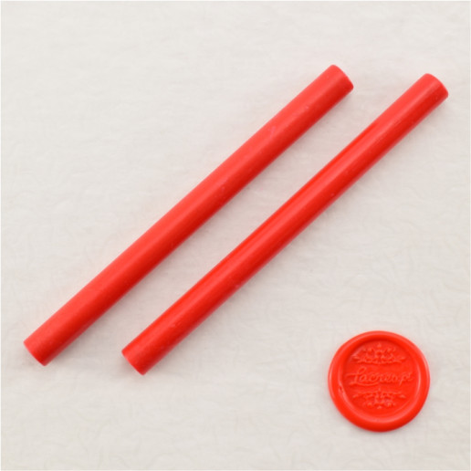 Conjunto de sinete com cabo de madeira e barra de lacre com pavio. A barra de lacre facilmente se acende com um isqueiro/vela. O lacre derretido pode ser depositado diretamente no sitio a lacrar. Com possibilidade de imprimir na caixa o que pretender.